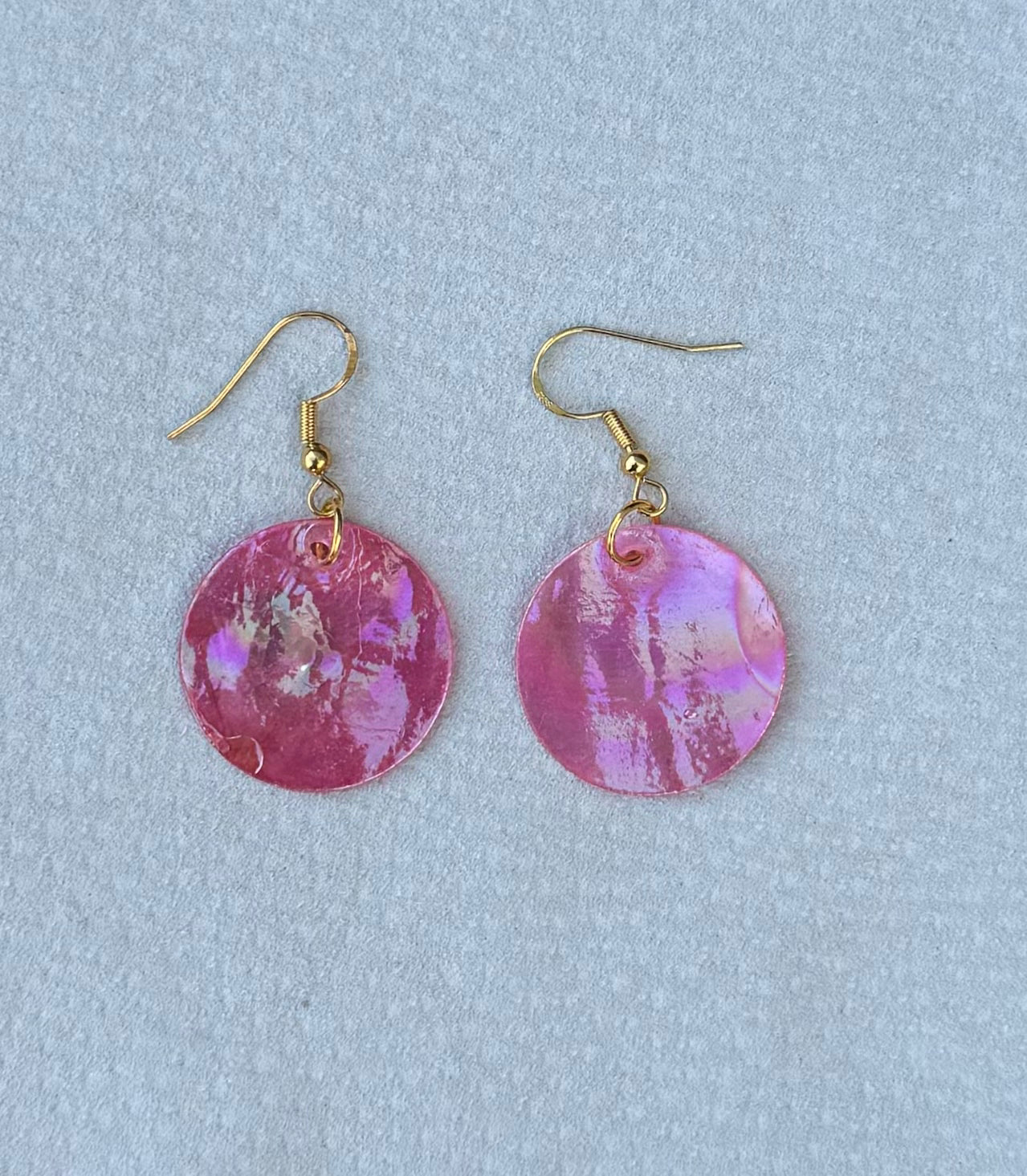 - Native American Hand Made Pink Iridescent Shell Earrings - Gold Ear Wire